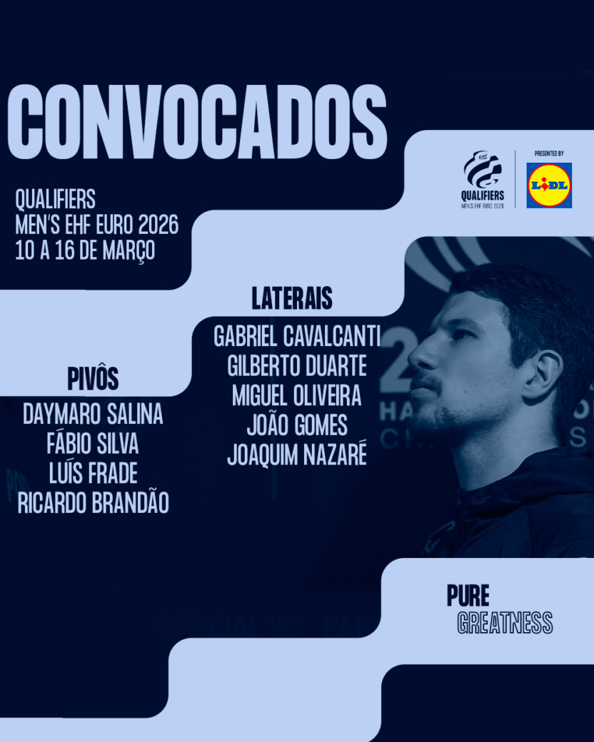 Convocatória da Seleção Nacional A Masculina para as Rondas 3 e 4 do EHF Euro 2026 Qualifiers em Odivelas e na Polónia (10 a 16/03/2025)