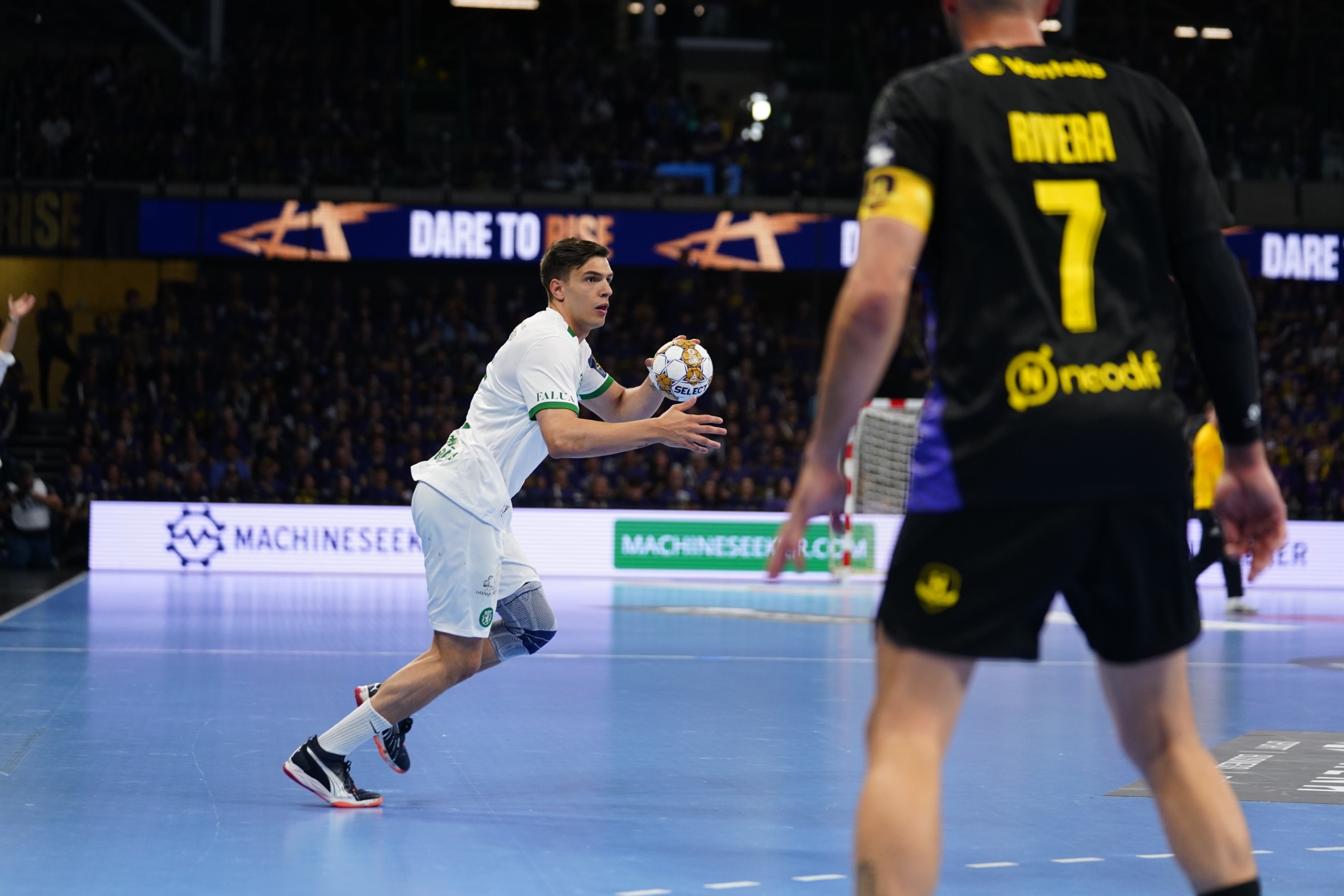 Foram precisos sensivelmente três minutos – e alguma paciência no processo defensivo – para os leões voltarem a igualar o encontro. O 8-8 teve a assinatura de William Höghielm e levou o técnico francês a usar o segundo tempo técnico, ainda na primeira parte. A paragem teve exatamente o mesmo desfecho: 4 golos consecutivos sem resposta.