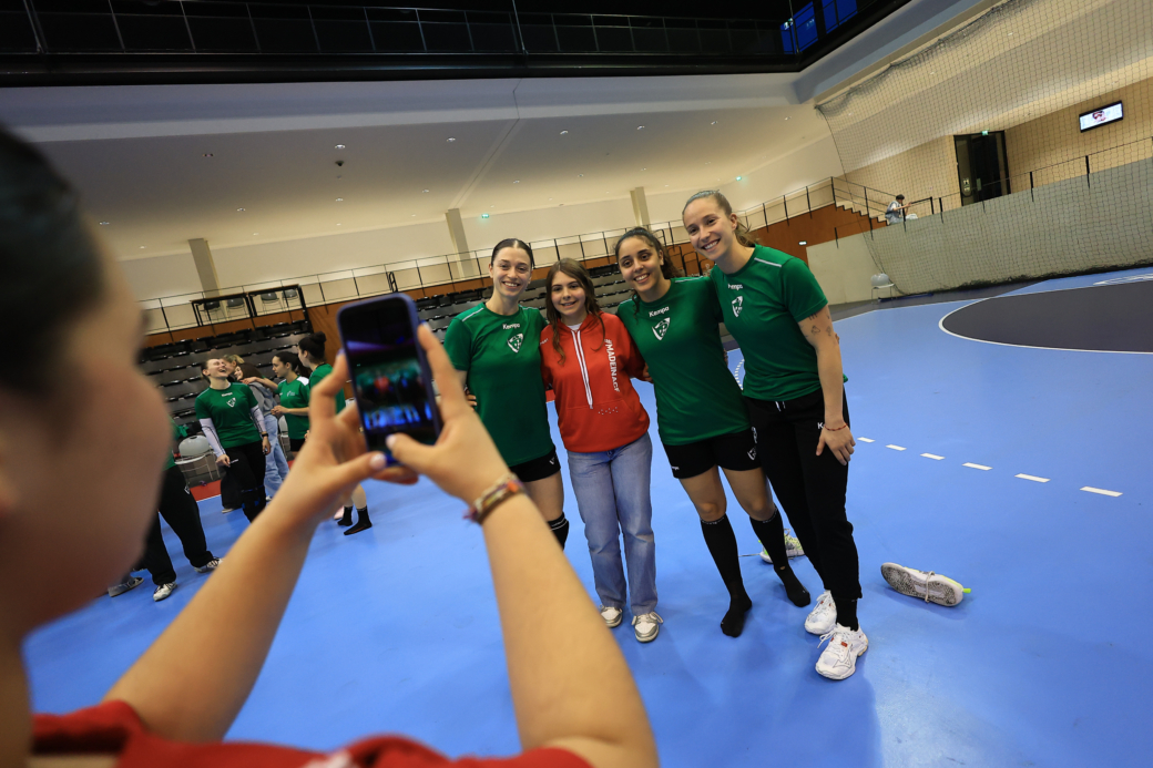 Esta segunda-feira, o segundo treino do dia foi especial, porque para além de ter contado com a colaboração da equipa masculina sub-18 do Andebol Clube de Fafe, foi também aberta ao público e no final, dezenas de jovens atletas tiveram oportunidade de trocar impressões com as Lusitanas, para além das habituais selfies e autógrafos que eternizam o momento.