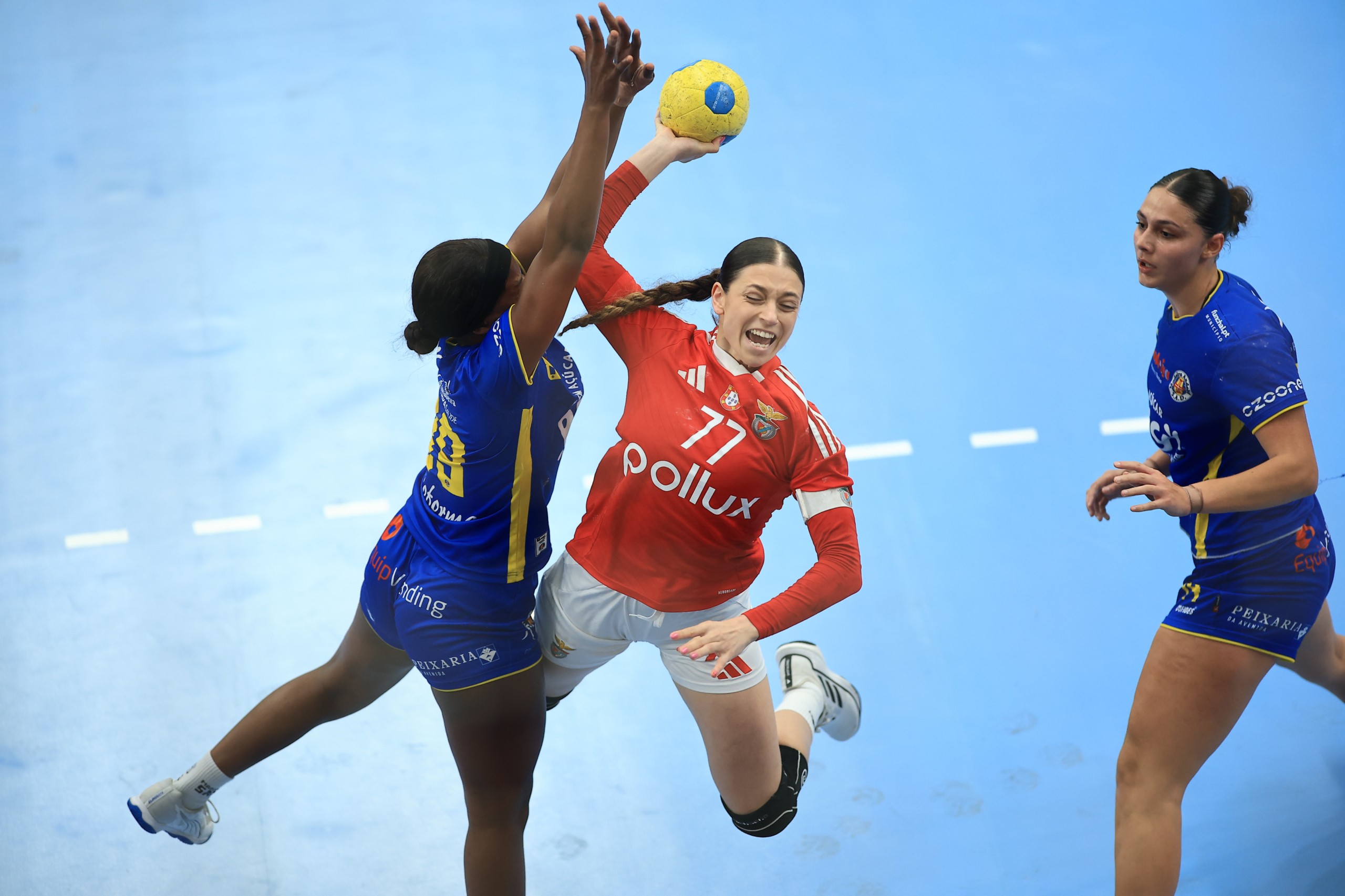 A primeira diferença de dois golos surgiu pela mão de Alexandra Shunu (7-5), mas em resposta ao melhor momento encarnado surgiu um parcial de 0-3 a favor das madeirenses. Marilene Souza devolveu o comando ao Madeira SAD (7-8).