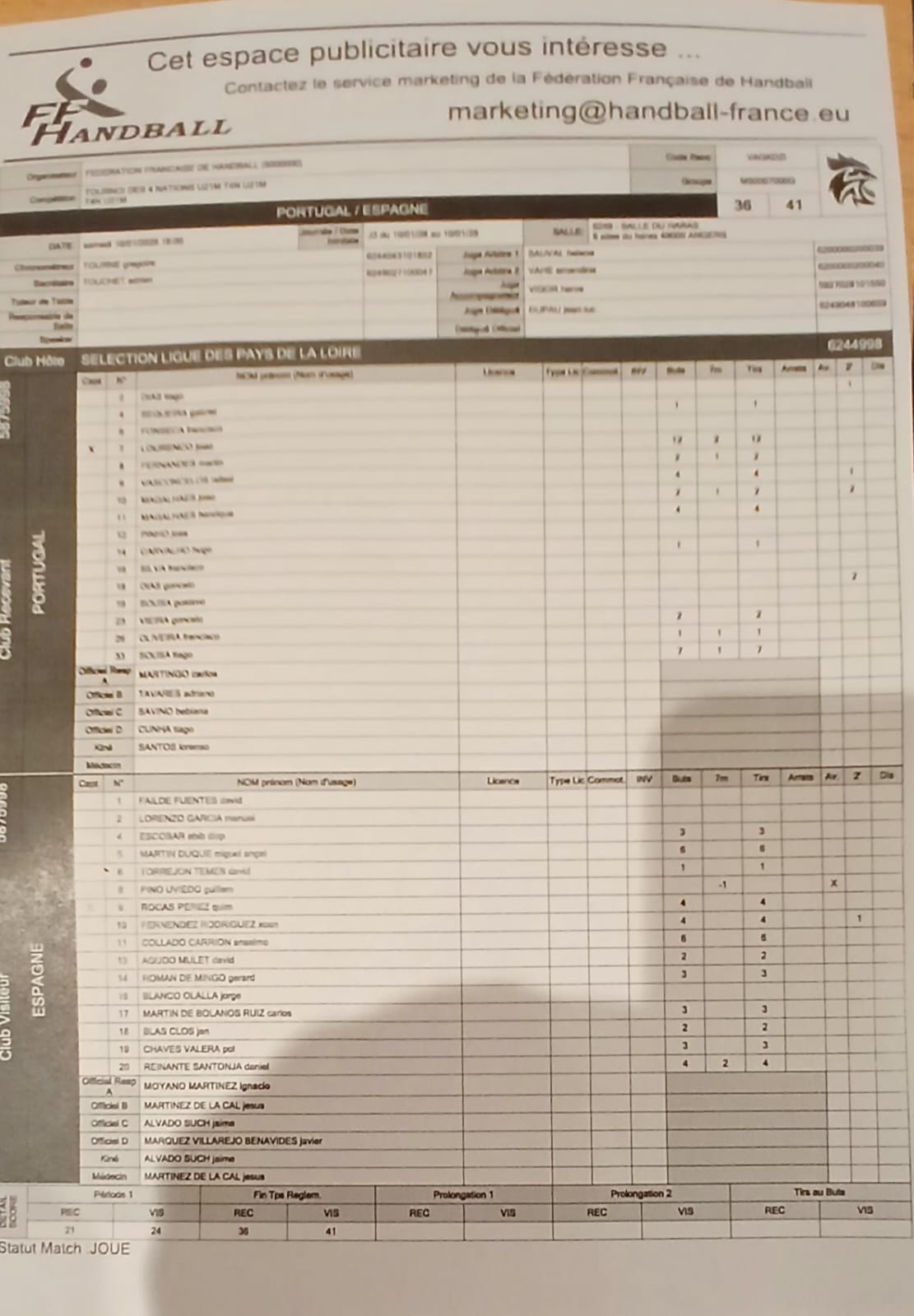 10.01.2026 – 15h00 – Portugal x Espanha, 36-41 (21-24)