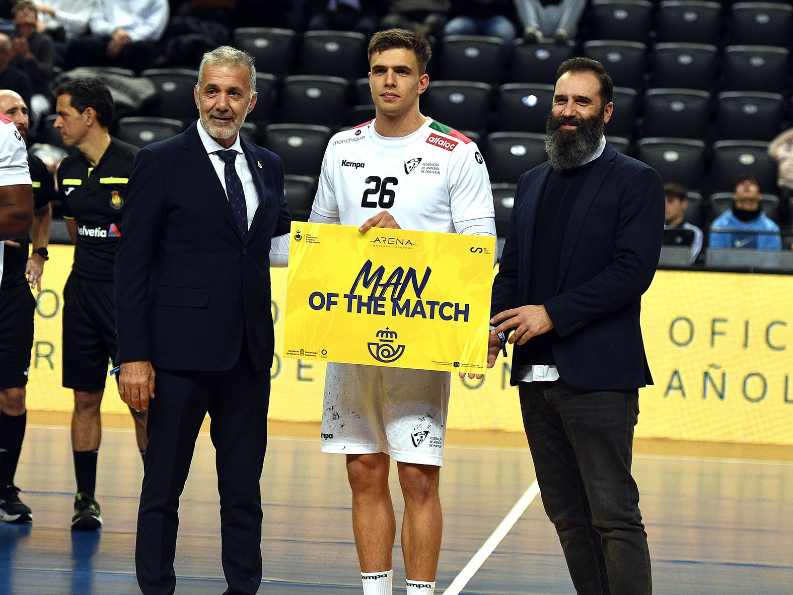 O momento de forma do número 41 luso atingiu contornos ainda maiores nos instantes finais, com sucessivas defesas. Já nos últimos minutos, a eficácia na linha de sete metros — primeiro por João Gomes e depois por Francisco Costa — selou o resultado ao descanso em cinco golos de diferença.